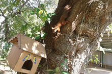 К нам в гости на участок детского сада прискакала белочка. Дети и сотрудники детского сада угостили ее вкусными орешками.