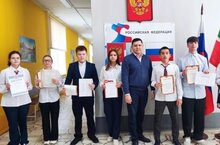 Cегодня прошла еженедельная церемония поднятия флагов и исполнения гимнов РФ и РТ. На церемонии присутствовали 8 классы.