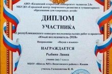 23 апреля состоялся II республиканский конкурс исследовательских работ и проектов «Юный исследователь – 2018», на котором ученица 3 класса Рыбина Л., под руководством учителя Галиахметовой И.Ф., выступила с докладом по направлению: «Науки о языках». Выступление оценили очень высоко, в результате Рыбина Л.А. была награждена дипломом. Поздравляем!