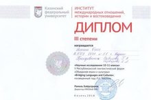 2 марта учащиеся 10 класса Ильина Олеся и Исмагилова Ангелина приняли участие в V Республиканском лингвистическом форуме «Объединяя языки и культуры» “Bridging Languages and Cultures”. Организаторами конкурса являются ФГАОУ ВО «Казанский федеральный университет», Институт международных отношений, истории и востоковедения, Высшая школа иностранных языков и перевода.