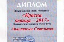 Поздравляем Савельеву Анастасию, победительницу он-лайн голосования «Красна девица 2017» по версии читателей сайта «Woman’s day». Спасибо всем, проголосовавшим за Настю.