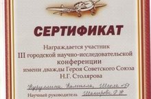 15 апреля учащаяся 8 класса Нуруллина Камилла вместе с учителем татарского языка и литературы Шакировой Р.Н. приняли участие в III городской научно-исследовательской конференции имени дважды Героя Советского Союза Н.Г.Столярова.
