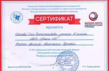 26 февраля учащиеся нашей школы: Исмагилова Ангелина 8 класс (учитель Вавилова Г.А.), Гарифулин Даниил 9 класс (учитель Александрова М.Р.), Губаева Аделина 10 класс, Иванова Ольга, Габдуллина Индира и Гарипова Ралина 11 класс (учитель Акмаева А.С.) участвовали в III Республиканском лингвистическом форуме «Объединяя языки и культуры» «Bridging Languages and Cultures». Ребята работали на различных практических площадках: «Властелин звука», «Тайны перевода», «Виртуальная экскурсия». Все участники награждены сертификатами. Исмагилова Ангелина заняла 3 место на научно-исследовательской секции с работой «Особенности перевода терминов живописи с английского на русский язык». Молодцы!