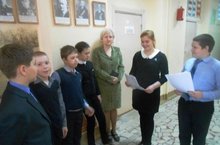 В преддверии праздника Победы учитель истории Борисова Лидия Владимировна и учащиеся 6Б класса подготовили экскурсии для учащихся начальной школы. Экскурсии были посвящены участникам ВОВ, чьи портреты размещены на школьной Стене Памяти, великим битвам ВОВ.