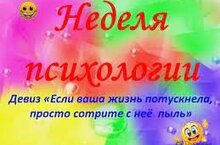 С 17 по 23 апреля в школе пройдет Всероссийская неделя психологии. В рамках недели будут проведены тренинги, выставки психологической литературы, мини-опросы, конкурсы психолгических рисунков и плкатов.