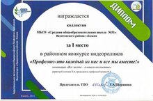 Поздравляем коллектив школы с победой в районном конкурсе видеороликов "Профсоюз - это каждый из нас и все мы вместе!". Мы заняли первое место. Выражаем благодарность творческой группе: Ганзиной О.А., Александровой М.Р., Ивановой Т.И.