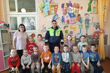 13 мая в нашем детском саду состоялась встреча детей с инспектором ДПС ГИБДД лейтенантом полиции Жанназаровым Рустамом Маликовичем. Он провел профилактическую беседу о правилах дорожного движения. Цель беседы - профилактика детского дорожно-транспортного травматизма. Рассказал воспитанникам о том, как правильно вести себя на проезжей части и объяснил правила езды на велосипеде. На протяжении встречи дети с большим вниманием слушали и задавали интересующие их вопросы. В конце встречи инспектор ГИБДД пожелал детям быть осторожными, внимательными и беречь себя на дороге!
