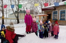 Сгребание снега на участке в определенное место; расчистка дорожки к крыльцу (коллективный труд).