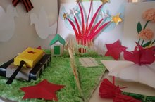 Балаларның «Җир көне» нә багышлап, ойдә әти-әниләре белән бергә ясаган, кисеп ябыштырган эшларе.