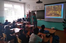 Библиотекарь Нурсаетова Л.Н. провела беседу с учащимися начальных классов. Во время беседы учащиеся познакомились с баснями, сказками, пословицами и загадками, повестями и рассказами, написанными Л.Н. Толстым для детей. Ребята также узнали много интересных фактов из биографии писателя.