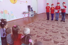 Сегодня отряд ЮИД "Зебра" выступил в детском саду "Карлыгач" с агитбригадой "Засветись!". Ребята с интересом смотрели выступление отряда. Из выступления ребят они узнали что такое фликер. Ношение фликера снижает риск наезда на пешехода в темное время суток в 6 раз. Фликеры спасают жизнь. Юидовцы порекомендовали малышам носить светоотражающие фликеры на одежде. После выступления они передали буклет "Стань заметней на дороге!" малышам.