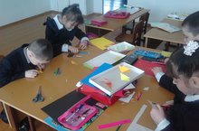 По плану первый день недели объявлен как День эмоциональности, общения и творчества. Главный цвет – синий. Ученики выполняли коллективные творческие проекты: оригами «Подводный мир планеты Земля» и «Водный транспорт страны».