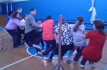 Сегодня прошли соревнования "Веселые старты" с участием учащихся и педагогов школы. Путем жеребьевки участники были поделены на 2 команды "Быстрые" и "Ловкие". Команды соревновались в перетягвании каната, забивании голов, прыжках в длину, бадминитоне. По итогам соревнований победила команда "Ловкие". Поздравляем победителей!