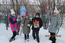 Канатлы дусларыбызга кышкы салкын көннәрдә ярдәм итү максатыннан, без җимлекләр ясап куйдык. Һәр көнне анда нинди кошлар килүен күзәтәбез, тәмле изыклар өстәп торабыз. Рәхим итегез, кошкайлар! Без үзебезнең кечкенә генә булса да изге эш эшләвебезгә шатланабыз.