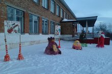 Учащиеся, родители и коллектив школы приняли активное участие в создании снежного городка. Ежедневно у дверей школы учащихся встречают Дед Мороз, символ наступающего года обезьяна, персонажи из мультфильмов и сказочно украшенная елочка.