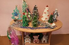 Мәктәптә кул астындагы материалдан ясалган яңа ел чыршылары күргәзмәсе эшли.
