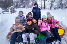 Дети с удовольствием катались с горы на "ватрушках", санках, снегокатах.