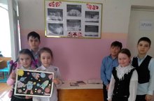 2,4 сыйныф укучылары китапханәче Гыйбадуллина Г. Н.җитәкчелегендә Ю. Гагаринның космоска очуына 60 ел тулуга багышланган "Космос балалар күзлегеннән" дип исемләнгән күләмле панно әзерләделәр.