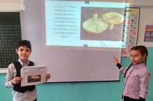 3 сыйныф укучылары иптәшләре алдында "Кызыклы гөмбәләр" дигән темага чыгыш ясадылар. Бер - берсеннән файдалы мәгълүматлар алдылар