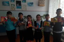2,4 нче сыйныф укучылары китапханәче Гыйбадуллина Г. Н.җитәкчелегендә әниләр һәм хатын-кызлар коллективы өчен котлау открыткалары әзерләделәр.
