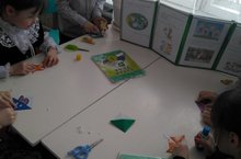 Сегодня, в рамках внеурочной деятельности "Бумагопластика", учащиеся тренировались в изготовлении закладки для книг.