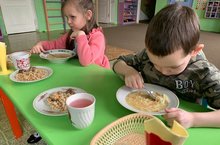 Ребенку-дошкольнику требуется полноценное пяти-шести разовое питание: завтрак, второй завтрак, обед, полдник и ужин, молоко или кефир на ночь. В детском саду мы стараемся выдерживать режим питания. На завтрак предпочтительнее всего предлагать ребенку кашу на молоке.В кашу можно добавить свежие фрукты, измельченную курагу или чернослив, изюм, или любые другие ягоды и фрукты по сезону. Также для завтрака отлично подойдут творог или омлеты.