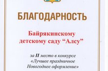Бәрәкә "Алсу" бакчасы "Иң яхшы Яңа ел бизәлеше" бәйгесендә 2 урынны яулады.