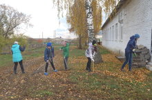 Бүген без мәктәп һәм аның янындагы территорияне коелган яфраклардан, корыган ботак һәм үләннәрдән чистарттык.