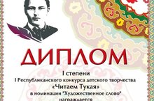Хафизов С, Ганиев И, Гарипова З приняли участие в Республиканском конкурсе творчества "Читаем Тукая" и были награждены дипломами 1 степени.