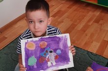 Космос привлекает детей своей загадочностью и неизвестностью, поэтому ребята приняли участие в подготовке рисунков на космическую тему.На их работах можно увидеть разнообразные космические объекты, ракеты, планеты.