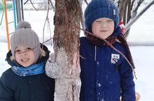 Сколько радости приносит снег детям.Можно играть в снежки, лепить снеговиков, кататься на санках.