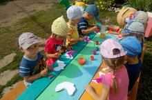 Песок нередко действует на детей как магнит, их руки сами, начинают пересыпать и просеивать песок, строить тоннели, горы, выкапывать ямки.А если к этому добавить различные игрушки, тогда у малыша появляется собственный мир, где он выдумывает и фантазирует и в то же время учится работать и добиваться цели.