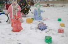 Наш участок превратился в сказочный мир.Снежные фигурки украсили наш участок. Постройки из снега помогают развивать у детей различные виды движений ходьбу, метание, прыжки.В итоге на участке появились герои из мультфильма "Маша и медведь".