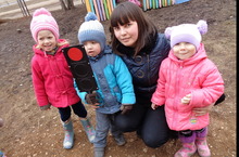 Поэтому одно из прогулок мы посвятили правилам дорожного движения, а точнее "господину Светофору". После небольшой беседы на тему:"Красный, жёлтый, зелёный", дети активно и с большим интересом ответили на вопросы, соответствующие данной теме. Затем, познакомившись с макетом светофора, пошли играть в сюжетно-ролевую игру "Соблюдаем правила дорожного движения": кто-то был светофором, кто-то водителем, а кто-то пассажиром. Все справились с заданием на отлично!