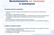 Скоро начнутся каникулы. Школьники будут купаться в водоёмах, отдыхать в деревне, пойдут с родителями в лес. Предлагаем Вам ознакомиться с памятками по безопасности на природе.