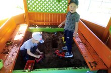 Әти-әниләр ярдәме белән комлыкны матур итеп буяп бирделәр.