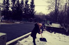 Мәктәп коллективы язгы өмәгә чыкты. Хезмәткәрләр мәктәп территориясен җыештырдылар.