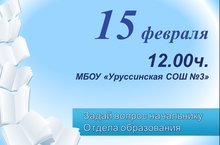Уважаемые родители, приглашаем Вас 15 февраля в 12.00 на встречу с начальником Отдела образования Гилязевой Г.М.