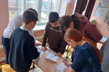 Для учащихся 7-го класса была проведена развлекательная игра "Кругосветное путешествие". Она построена на вопросах общей эрудиции, программных вопросах курса географии 7 класса. Ребята работали с картой мира: находили острова, материки, проливы, заливы, горы и озера. За каждый правильный ответ ученики получали жетоны. Победителем этого мероприятия стала Галиуллина А.