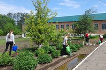 Лагерь тәрбияләнүчеләре мәктәп бакчасын төзекләндерү буенча "Хезмәт десанты" үткәрделәр: түтәлләрне чүп үләннәреннән утадылар, чәчәкләргә су сиптеләр.