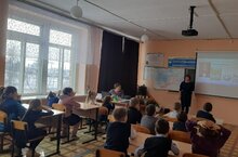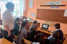 Ученики 3-4 и 9 классов за просмотром фильмов "Живой город" и "8 марта".