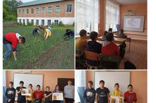 Утро в лагере началось с зарядки и уборки пришкольной территории и спортплощадки. В огороде воспитанники лагеря труда и отдыха пропололи сорняки вокруг кустов картофеля.