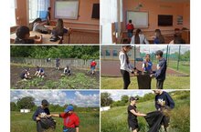 Бүген лагерь көне иртәнге зарядка һәм мәктәп яны территориясен һәм спорт мәйданчыгын җыештыру белән башланып китте. Бакчада хезмәт һәм ял лагерында тәрбияләнүчеләр бәрәңге куаклары тирәсендә чүп үләннәрен утадылар.