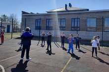 С наступлением теплых дней зарядка для обучающихся начальных классов организованно проводится на свежем воздухе.