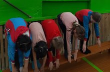 Сегодня прошла акция «ГТО в школе». Обучающиеся сдавали норматив «Наклон вперёд из положения стоя на гимнастической скамье».