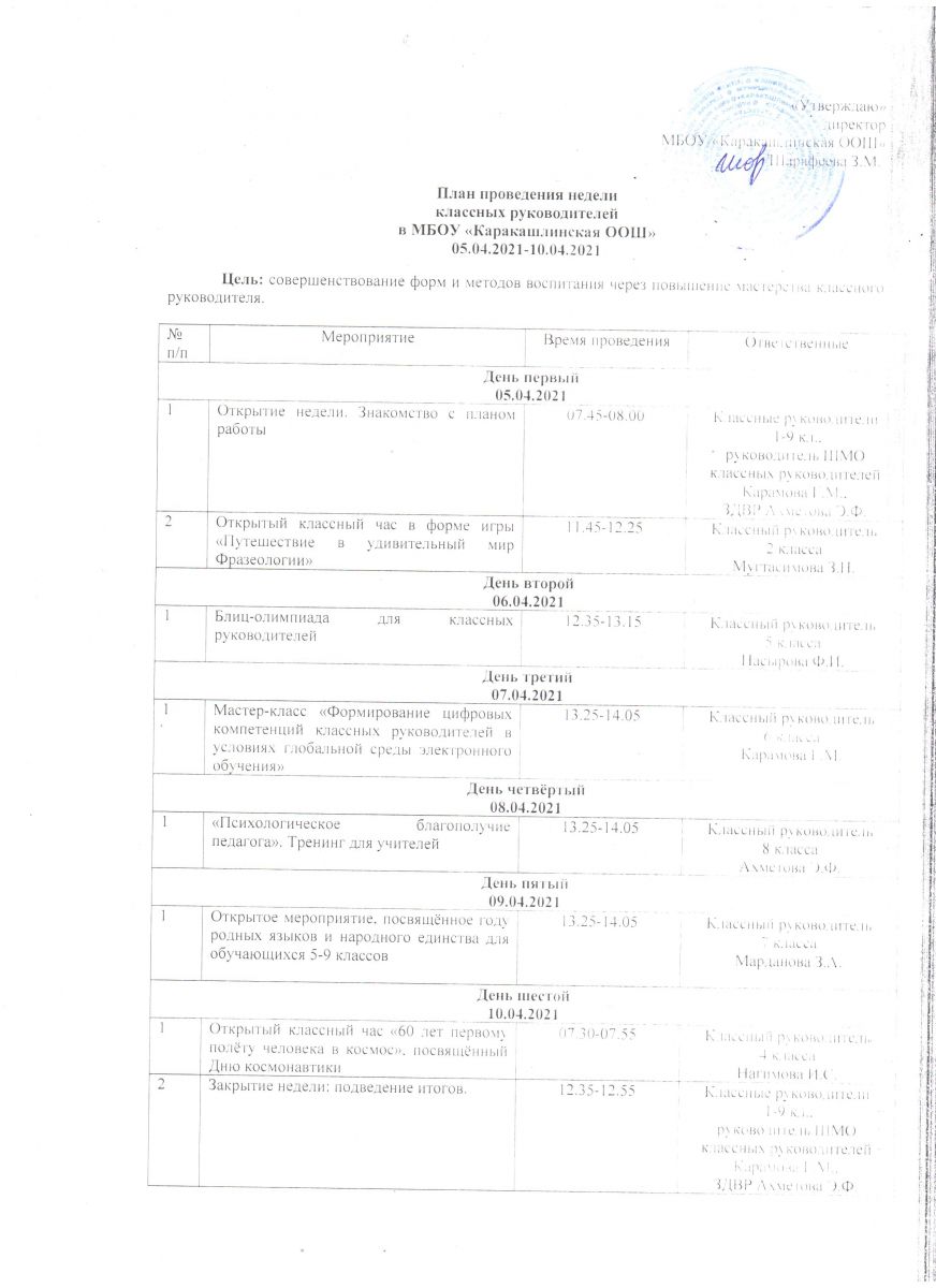 План проведения недели классных руководителей 05.04.2021