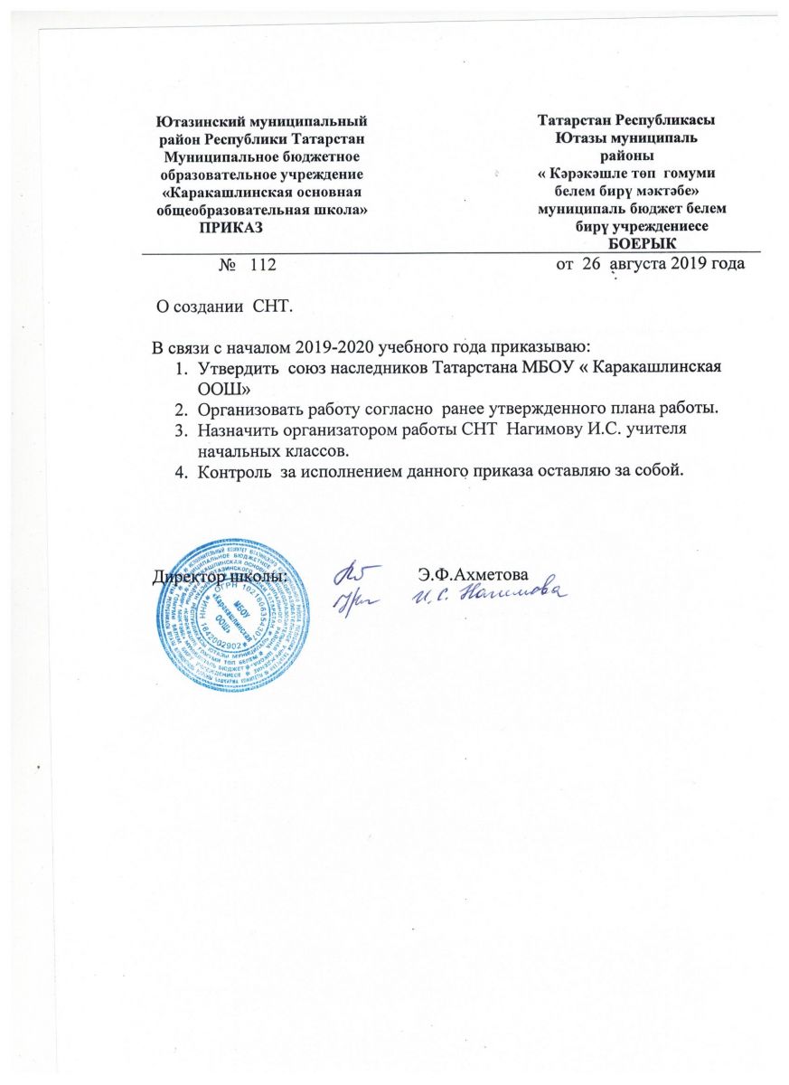 Приказ на 2019-2020 уч.год СНТ