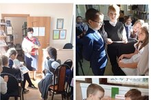 "Игелекле эшләр "акциясе кысаларында" Өмет " отряды волонтерлары 2 нче сыйныф укучыларын "Экология"илкүләм проекты - балалар карашы" республика конкурсы йомгаклары буенча, балалар рәсемнәренең күчмә күргәзмәсе белән таныштырдылар