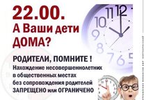Төнге сәгатьләрдә балигъ булмаганнарга ата-аналар (аларны алмаштыручы затлар) күзәтүеннән башка урамнар, стадионнар, парклар, скверлар кебек җәмәгать урыннарында булу тыела,