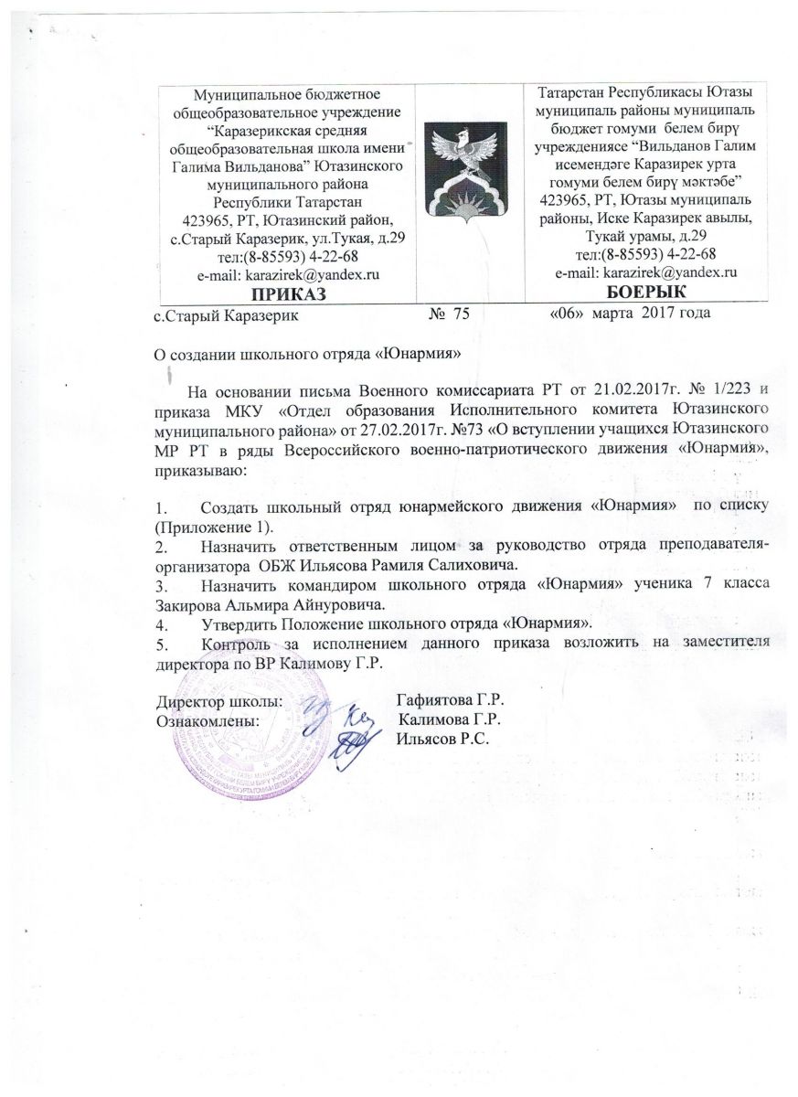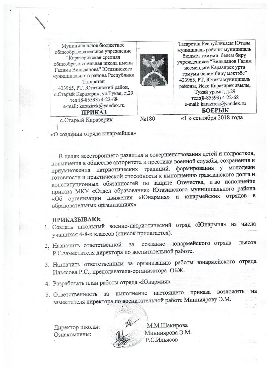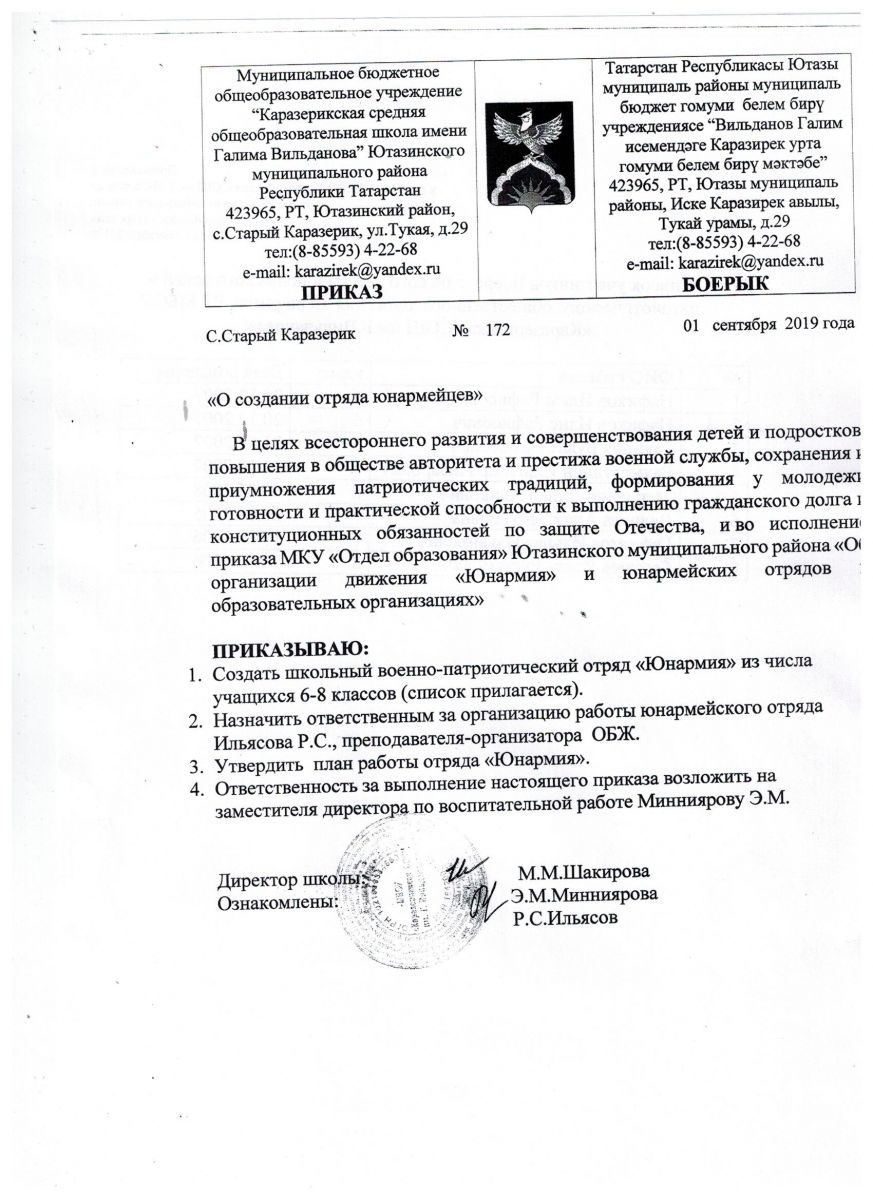 Приказ о создании отряда на 2021-2022 учебныцй год